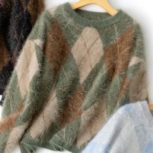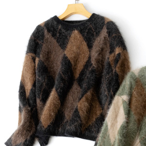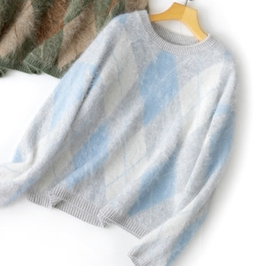 100%山羊绒 日本皇室拉绒4级抗起球纯山羊绒衫女拉毛毛衣菱形格