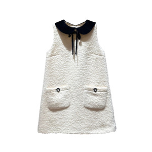 2024年秋季款式无袖娃娃领蝴蝶结法式口袋连衣裙Q165702B