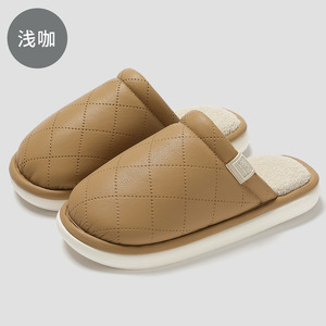 PU防水棉拖鞋男秋冬季室内居家家用厚底保暖舒适毛绒棉拖鞋女批发