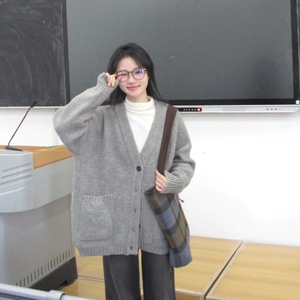 瑞彤灰色毛衣外套女秋冬2025新款宽松外穿日系慵懒风复古软糯针织