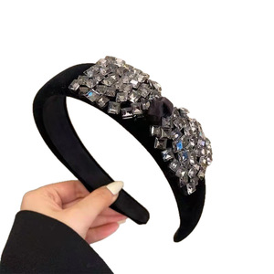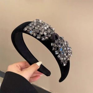 显脸小!轻奢满钻发箍女2025新款复古黑色高颅顶宽头箍蝴蝶结头饰