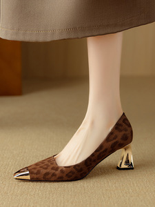 法式气质高跟鞋女2025春季新款浅口单鞋小香风豹纹晚晚鞋