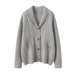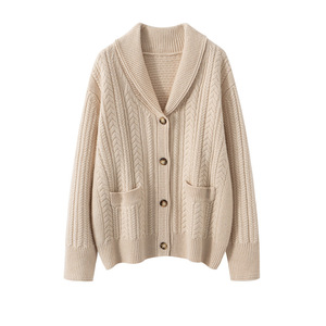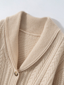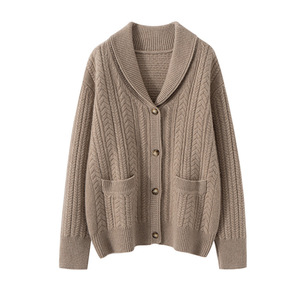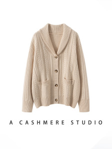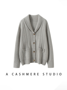 青果领绞花加厚山羊绒开衫女宽松懒惰风毛衣外套休闲秋冬羊绒外套