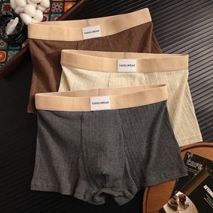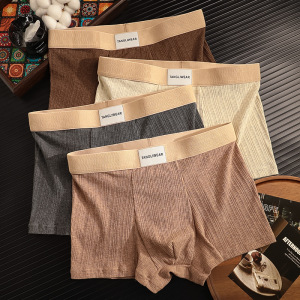 多条装秋冬新款ins风莫兰迪色高颜值纯色男士内裤简约平角裤中腰