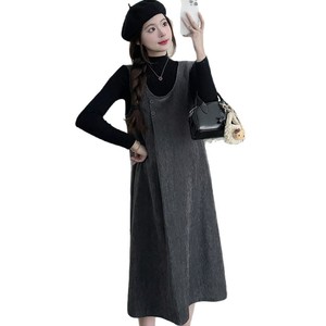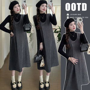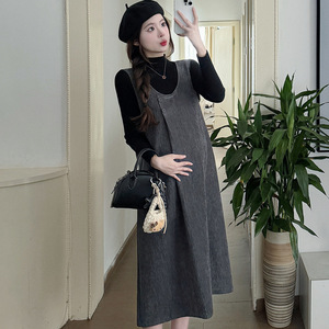 孕妇装秋装显瘦两件套新款时尚洋气减龄高级感背带裙打底套装宽松