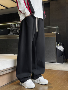 大码男士休闲裤春秋季潮流百搭垂感爆款直筒阔腿裤子抽绳运动卫裤