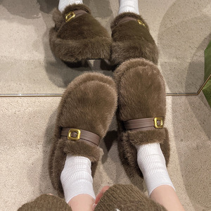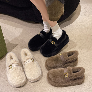 厚底白色毛毛鞋女外穿2025新款秋冬一脚蹬高级感水貂毛绒豆豆棉鞋