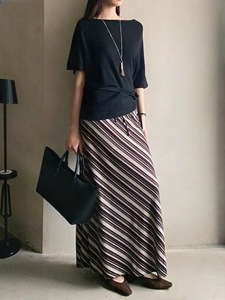 复古条纹半身裙女2025新款早秋季松紧腰百搭修身显瘦包臀a字长裙