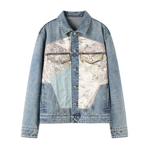 现货 202秋季新女休闲时尚百搭翻领拼色宽松长袖牛仔外套2J3RD17
