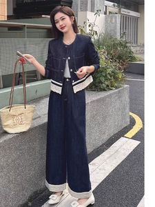 高端小香风套装2025爆款蕾丝花边外套阔腿裤两件套早秋穿搭一整套