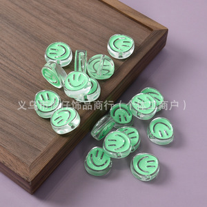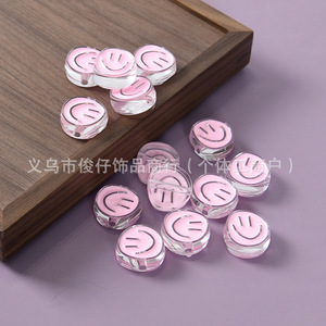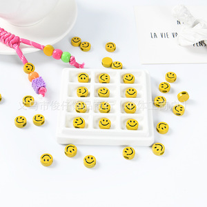 亚克力扁圆笑脸diy饰品配件散珠黄色直孔串珠手链项链手机链
