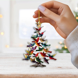 2025跨境新款彩色堆叠蜂鸟圣诞树装饰 圣诞节日家居装饰平面挂件