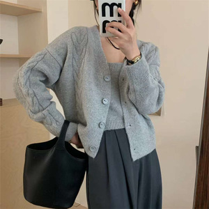 2025秋冬新款韩版麻花纹V领毛衣开衫外套+吊带背心针织两件套女装