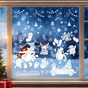 跨境圣诞节静电窗贴白色圣诞吊球圣诞装饰品商场橱窗玻璃定窗贴制