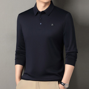 春秋中年新款男装纯色长袖T恤透气翻领长袖休闲打底上衣一件代发