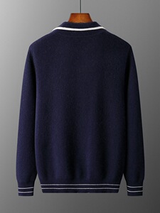 POLO领撞色外套开衫男士100%澳洲羊毛衫河北厂家批发代发轻熟风