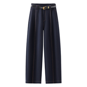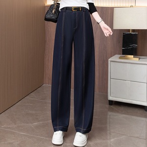 丹宁蓝牛仔裤女2025年秋季新款明线撞色拼接宽腿时尚百搭直筒长裤