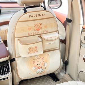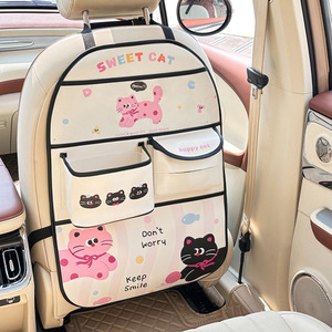 卡通汽车收纳挂袋2025新品创意车载垃圾桶车内防踢垫多功能置物袋