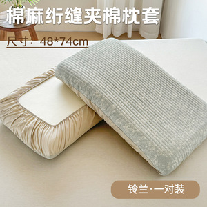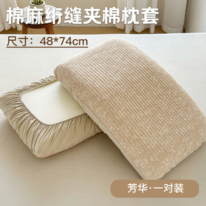 棉麻枕头套夹棉枕套一对装万能防头油隔脏枕芯内胆套单个2025新款