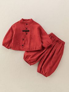 小月龄周岁男宝宝秋装喜庆红色两件套百天婴儿衣服早秋季分体套装