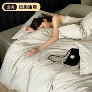 新款A类全棉长绒棉100S简约色织空气大提花加厚磨毛床单床笠四件