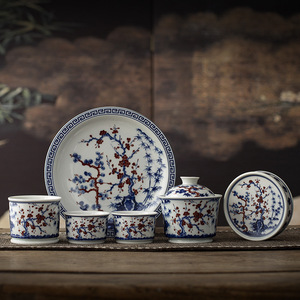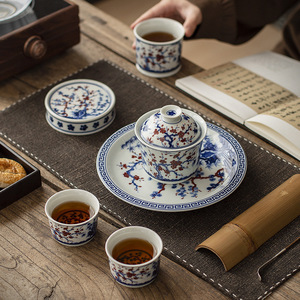 景德镇青花釉下彩功夫茶具套装家用客厅陶瓷盖碗茶杯整套高档轻奢