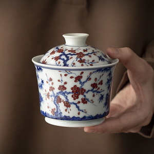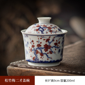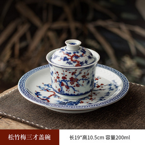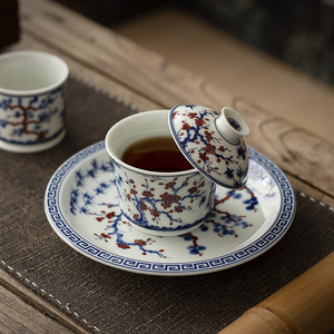 青花茶杯【三生】盖碗+壶承+盖置+2杯