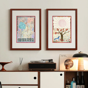 法式中古风包豪斯客餐厅装饰画现代抽象小众艺术边柜玄关挂画摆画