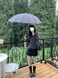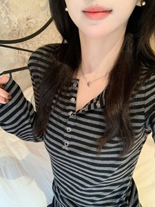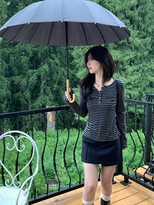 Berry 喜你而欢大庞风格 修身显瘦弹力条纹上衣女圆领百搭长袖T恤