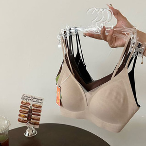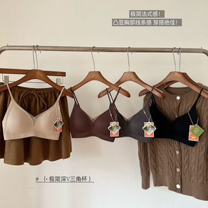 暖肌法式三角杯无痕内衣女薄款小胸聚拢防下垂显小螺纹调整型文胸