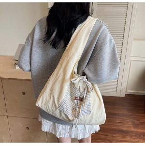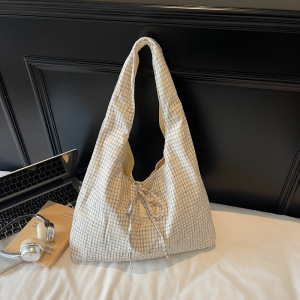 秋季可爱风休闲格子布托特包2025新款韩版轻便百搭大容量手提女包