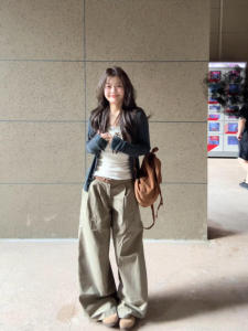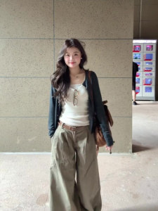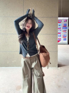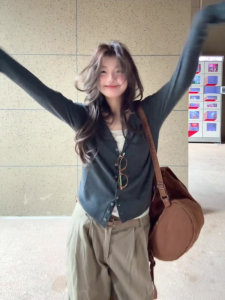 韩系复古松弛感休闲灰色针织衫女春秋原宿风百搭甜辣风别致上衣潮