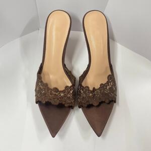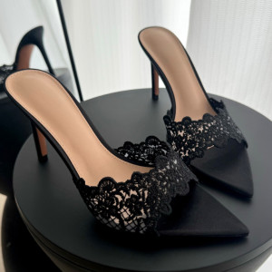 WO惠州市2025夏季高跟轻奢高级感蕾丝尖头细跟拖鞋欧美风时尚气质