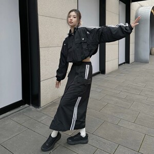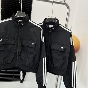 春秋季新款高版本立领刺绣上衣条纹运动女子休闲夹克宽松短款外套