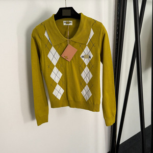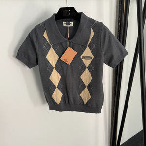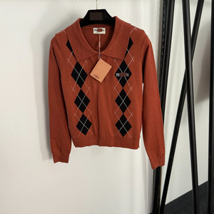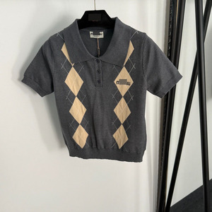 2025秋冬南油高端外贸可爱新款菱格子logo刺绣Polo领针织衫 上衣