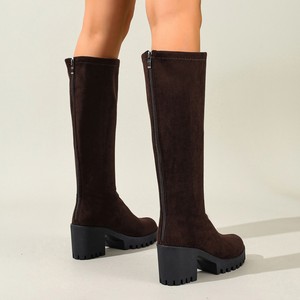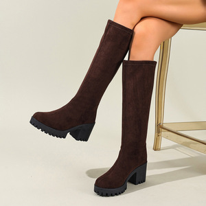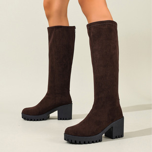 2025跨境大码粗跟不过膝长筒靴女秋冬季新款圆头厚底显瘦弹力靴