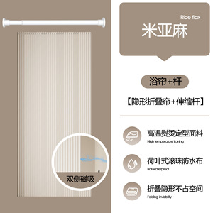 折叠浴帘米白色【帘+白杆+双侧磁吸】