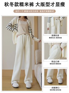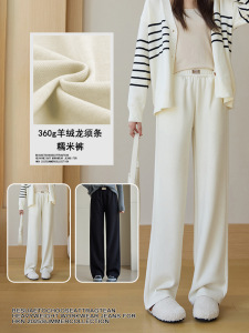 羊绒糯米裤女外穿秋冬季高腰慵懒风窄版阔腿裤加绒舒适休闲直筒裤