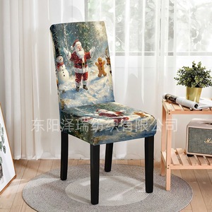 跨境卡通圣诞老人椅套新款节日装饰氛围餐椅套家用全包椅子套罩