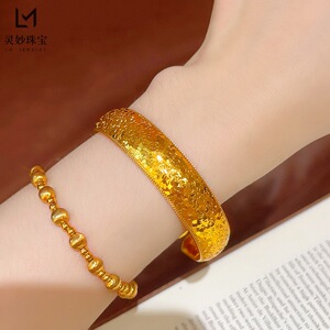 新中式沙金爆闪宽面碎冰冰轮胎开口手镯实心素圈镯子精致女送礼物