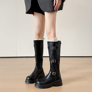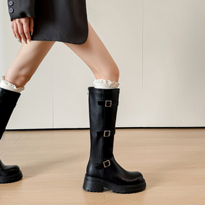 猪皮透气版~显瘦不过膝靴子女2025年秋冬复古骑士靴粗跟复古风