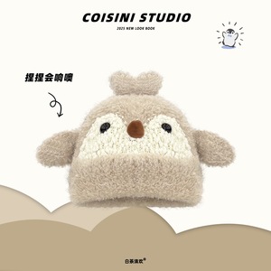 日系可爱企鹅耳朵会响毛绒帽子女秋冬保暖趣味百搭针织帽套头帽潮