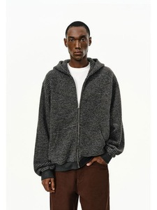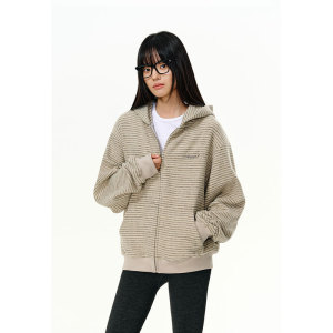 美式复古磨毛秋季条纹连帽卫衣外套男女新款情侣休闲慵懒宽松开衫