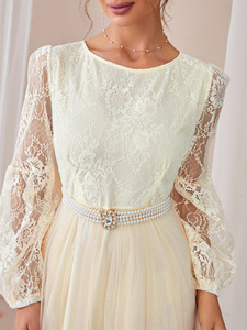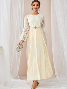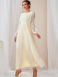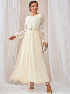 2025跨境外贸中东欧美女装春夏季新款时尚优雅蕾丝拼接网纱连衣裙