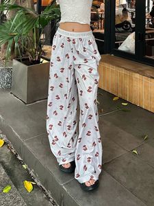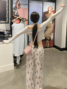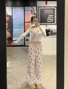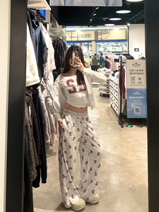 H家织带字母小海鸥冬日限定雪花小狗百搭阔腿裤高腰宽松居家长裤