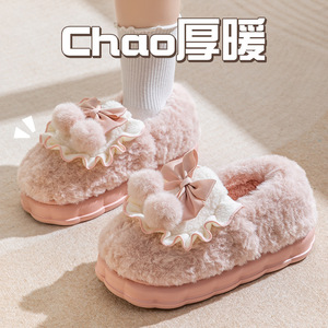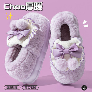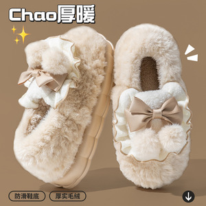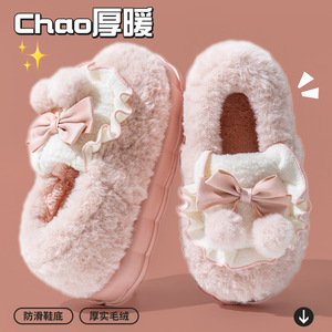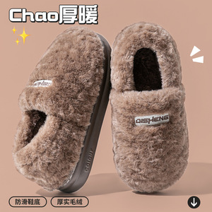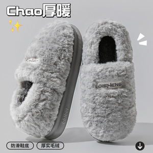 棉鞋女秋冬2025新款室内家居包跟防滑厚底月子毛毛绒保暖棉拖鞋男