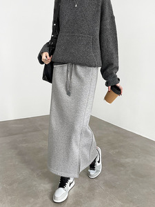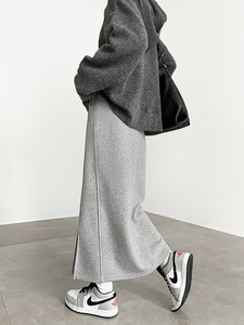 灰色开叉半身裙女秋季2025新款高级感包臀一步裙宽松直筒长款卫裙