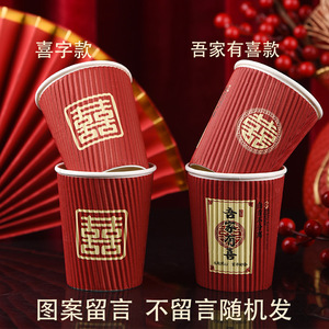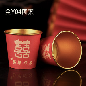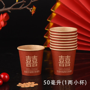 结婚一次性小口酒杯红色喜字敬茶水杯子家用加厚小号敬酒纸杯喜宴
