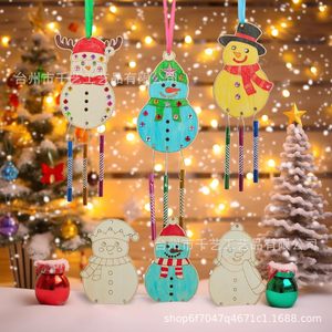 跨境木质圣诞节装饰木片雪人圣诞圣诞树装饰家居派对节日挂件标签