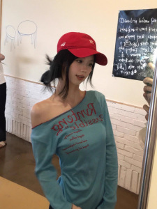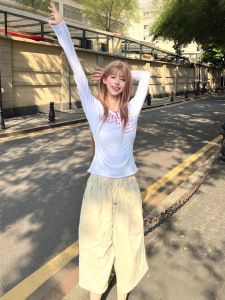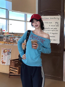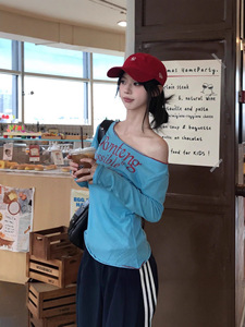 美式高街白色显瘦字母印花斜肩长袖防晒衣罩衫女夏季高级感上衣潮